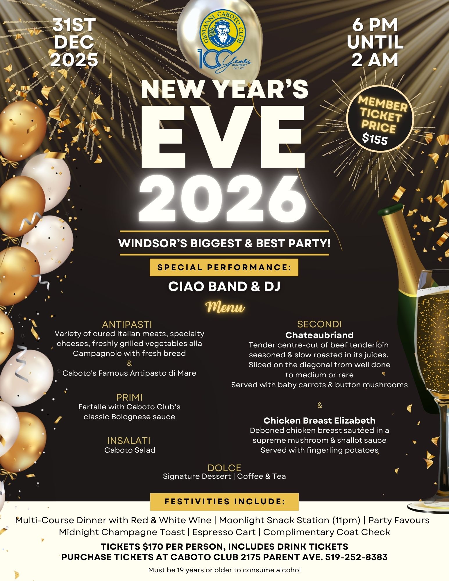 Tickets are now avaialble for sale at $170.00 ea (Caboto members pay $155.00 ea).